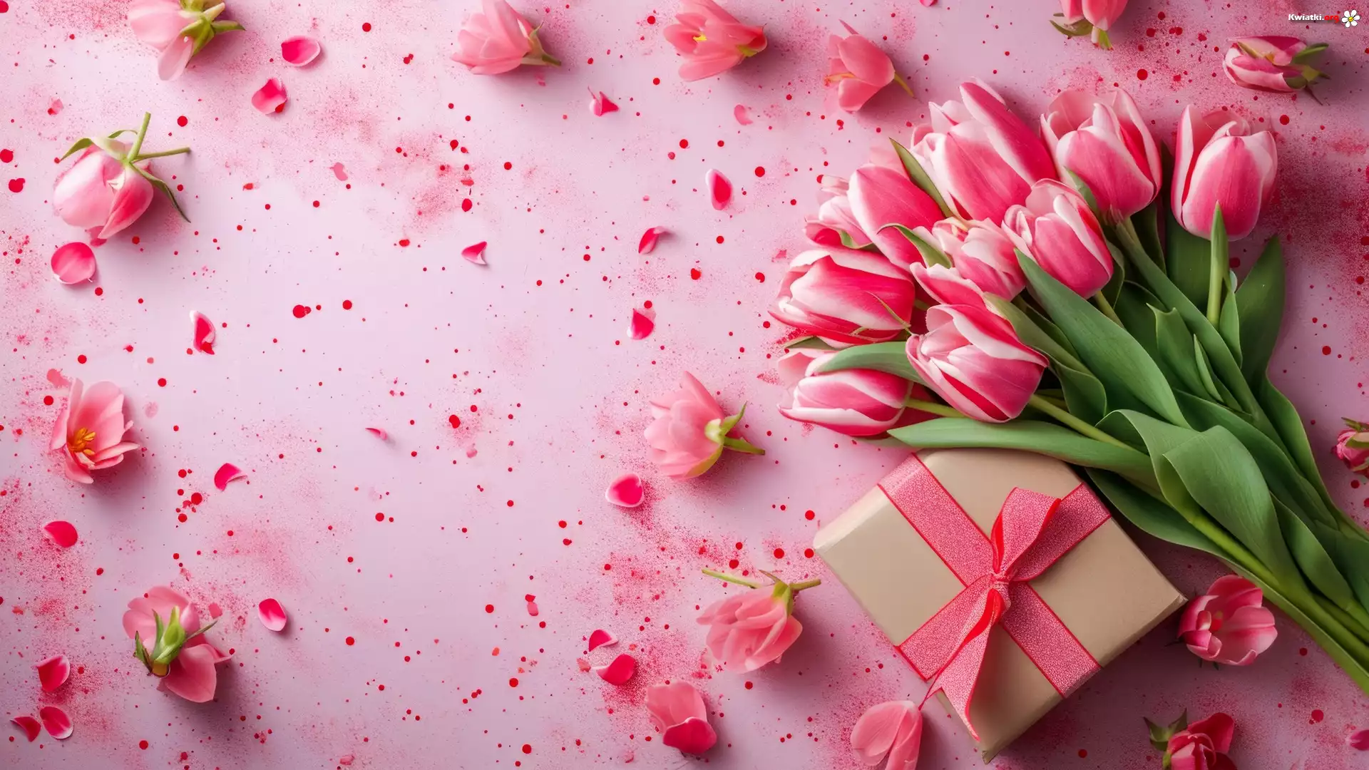 Kwiat Różowe, Tulipany, Prezent, Wstążka