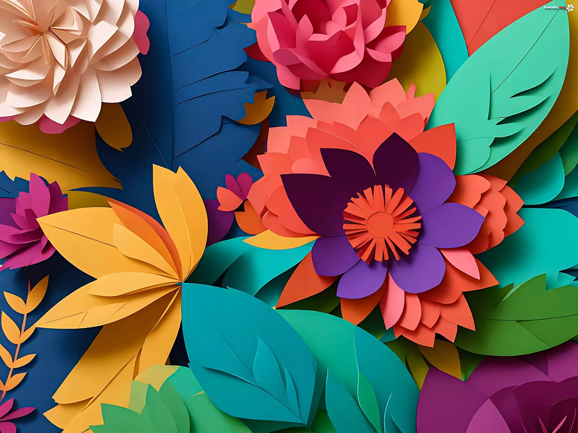 Papierowe, Kwiaty, Liście, Wycinanki - Zdjęcia