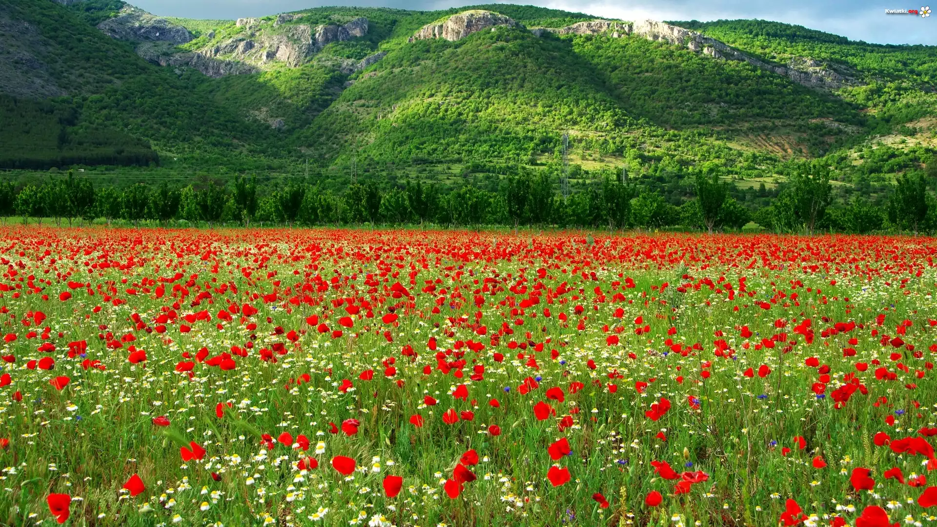 Wzgórza, Pole, Rumianki, Maki - Zdjęcia