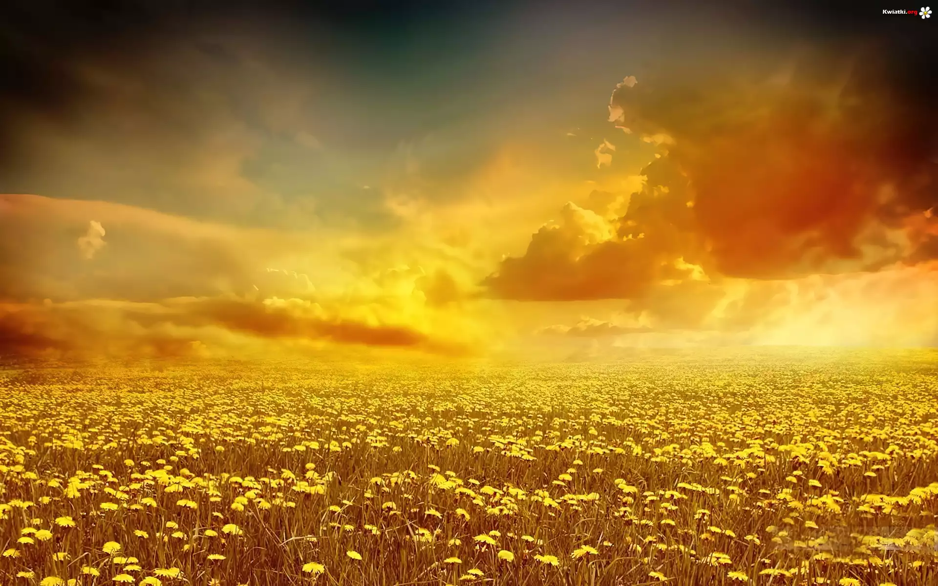 Kwiat Zachód, Słońca, Chmury, Łąka, Kwiatki