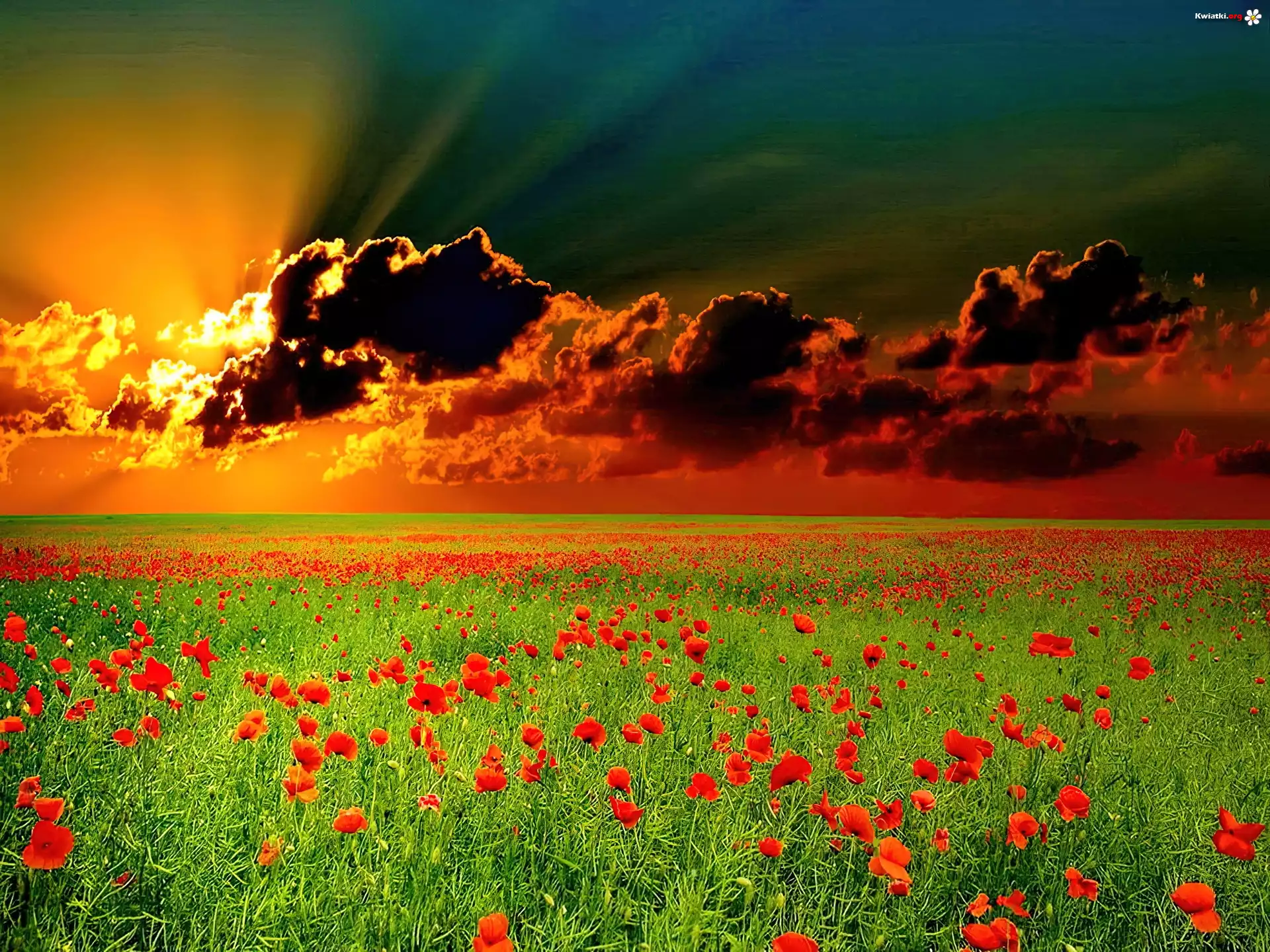 Kwiat Zachód, Słońca, Chmury, Maki