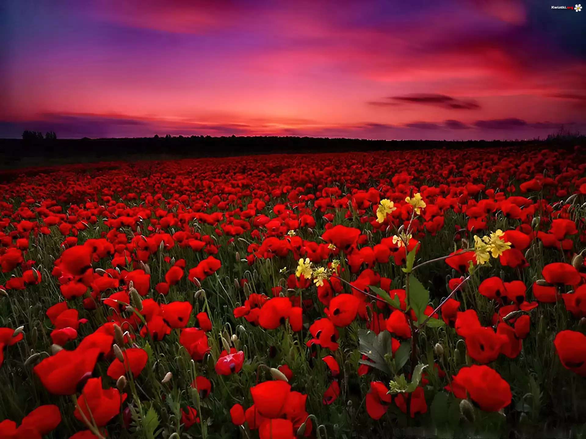 Kwiat Zachód, Słońca, Czerwone, Maki