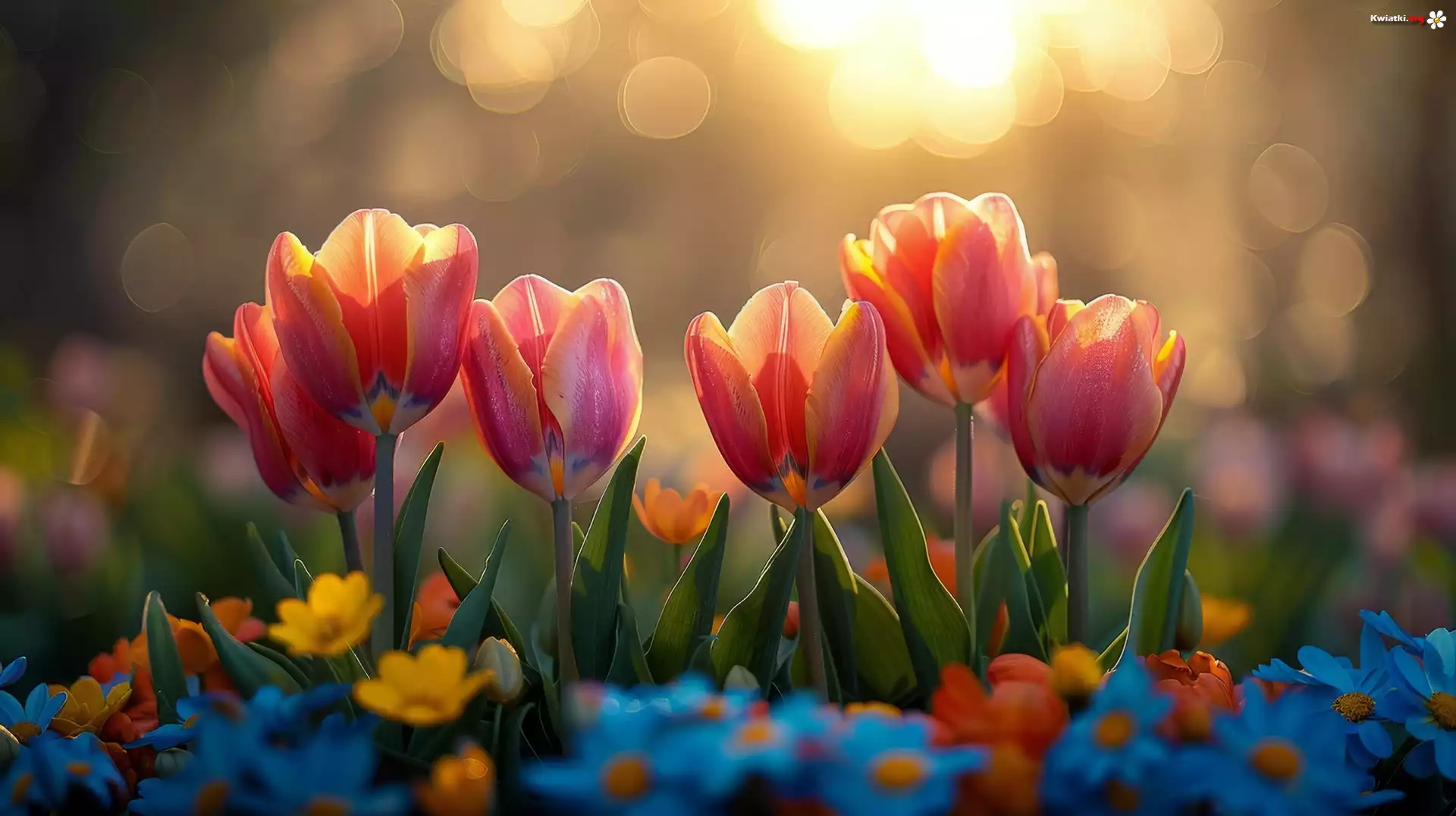 Kwiat Czerwone, Tulipany, Kwiaty, Zachód słońca, Grafika