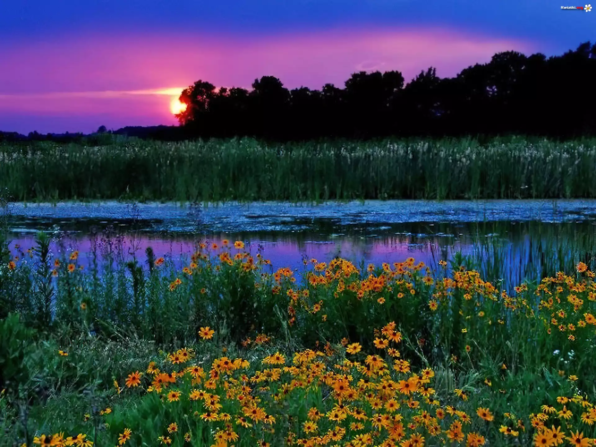 Kwiat Zachód Słońca, Jezioro, Kwiaty