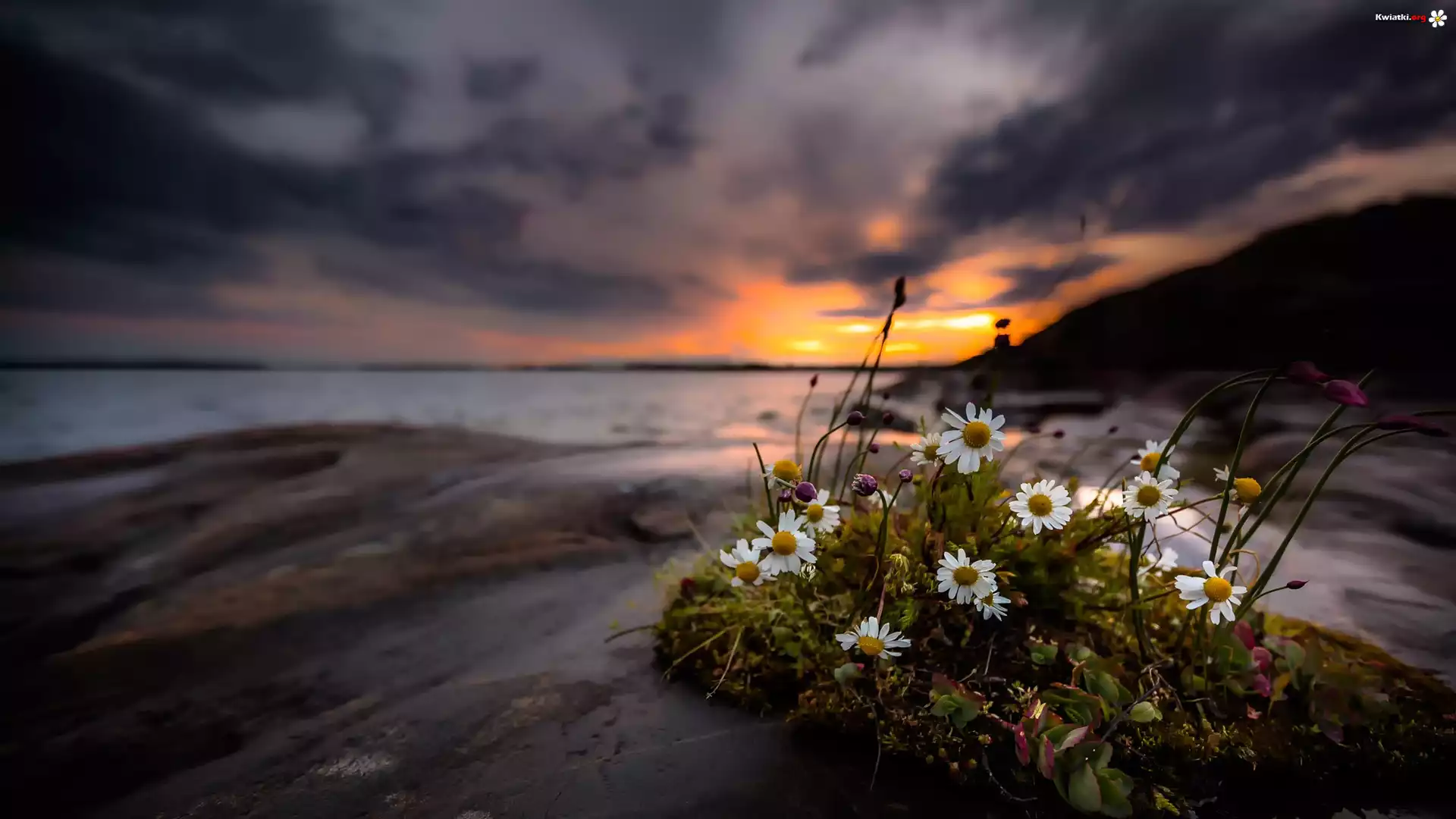 Zachód słońca, Morze, Kępka, Kwiatów - Zdjęcia