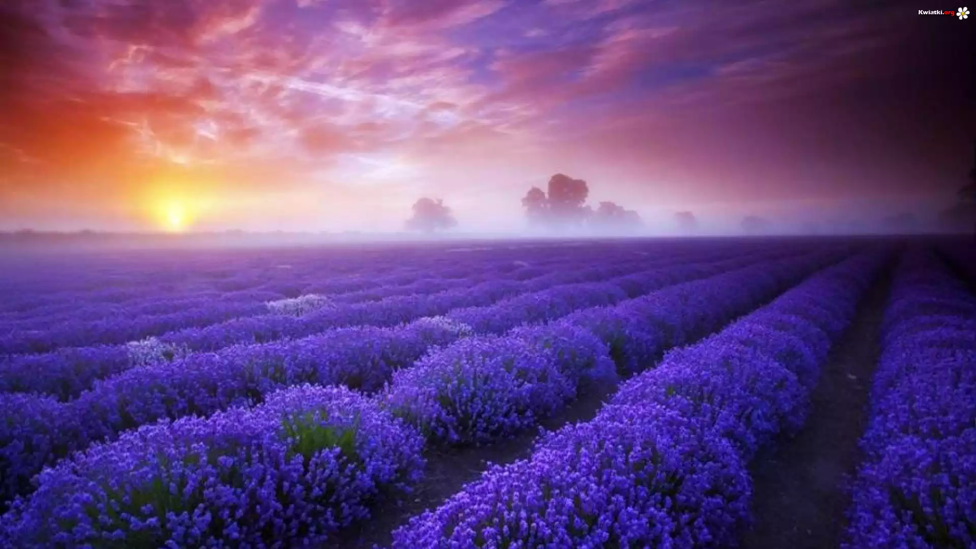 Kwiat Zachód, Słońca, Lawendowe, Pole