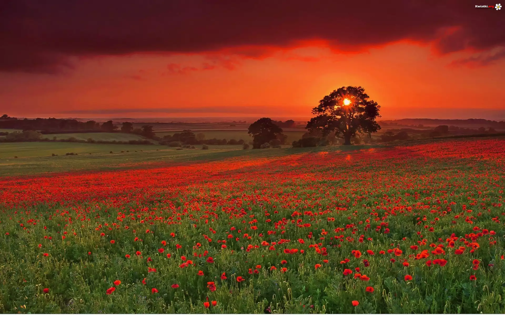Kwiat Łąka, Maki, Zachód, Słońca