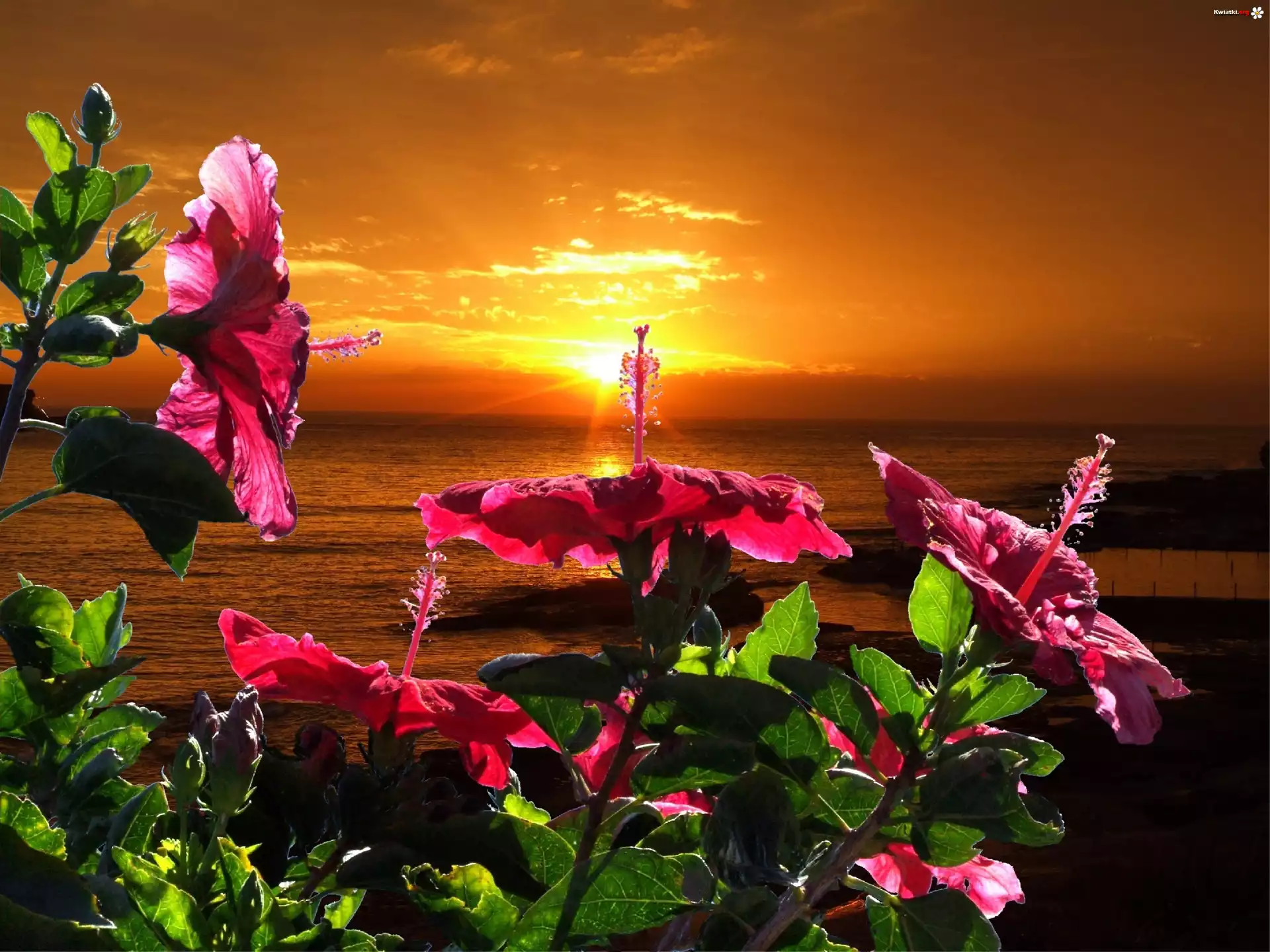 Kwiat Zachód, Słońca, Morze, Kwiaty