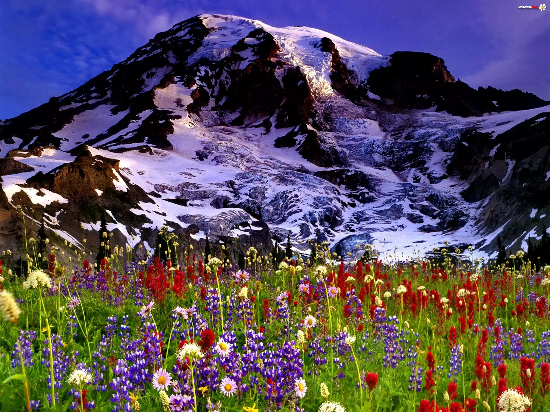 Kwiat Zachód, Słońca, Ośnieżone, Góry
