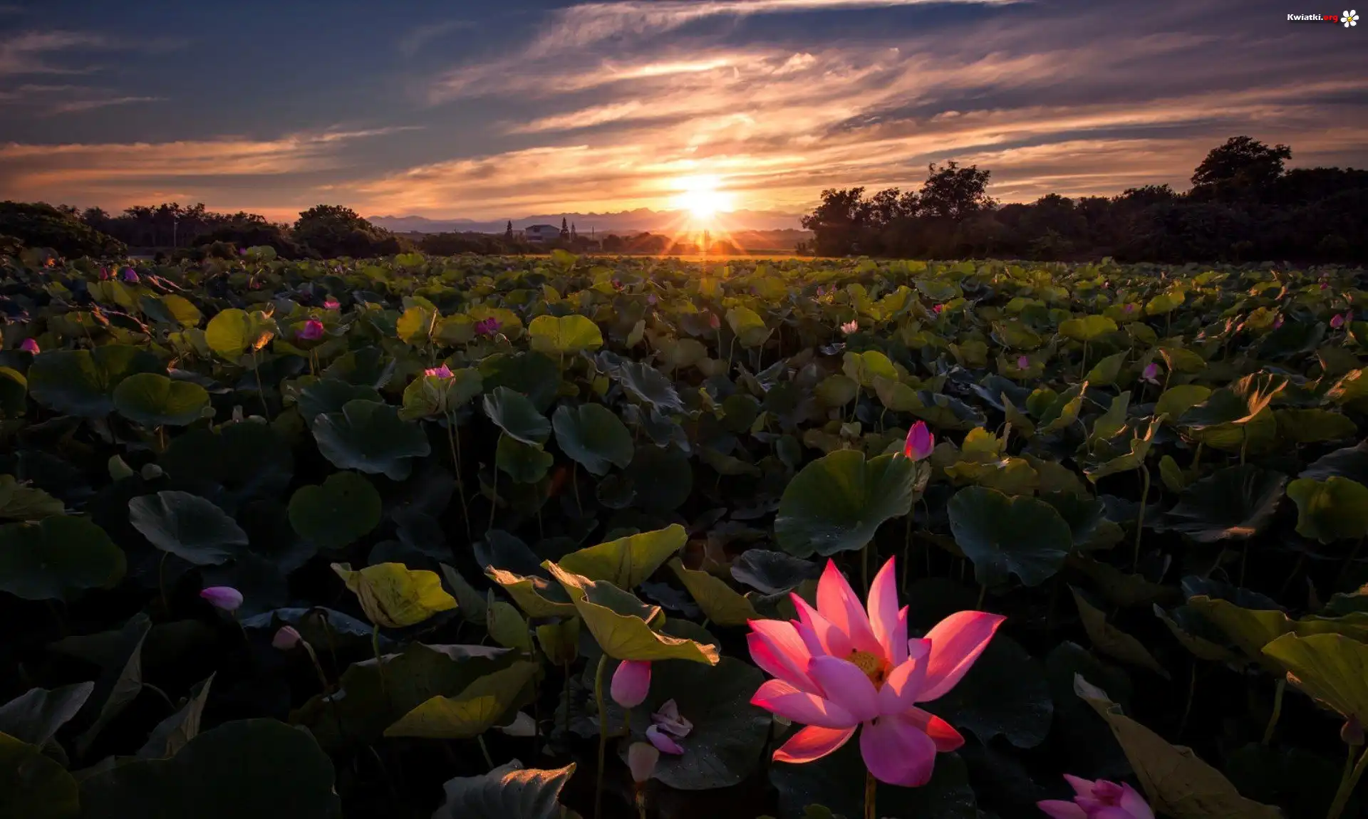 Zachód słońca, Plantacja kwiatów - Zdjęcia