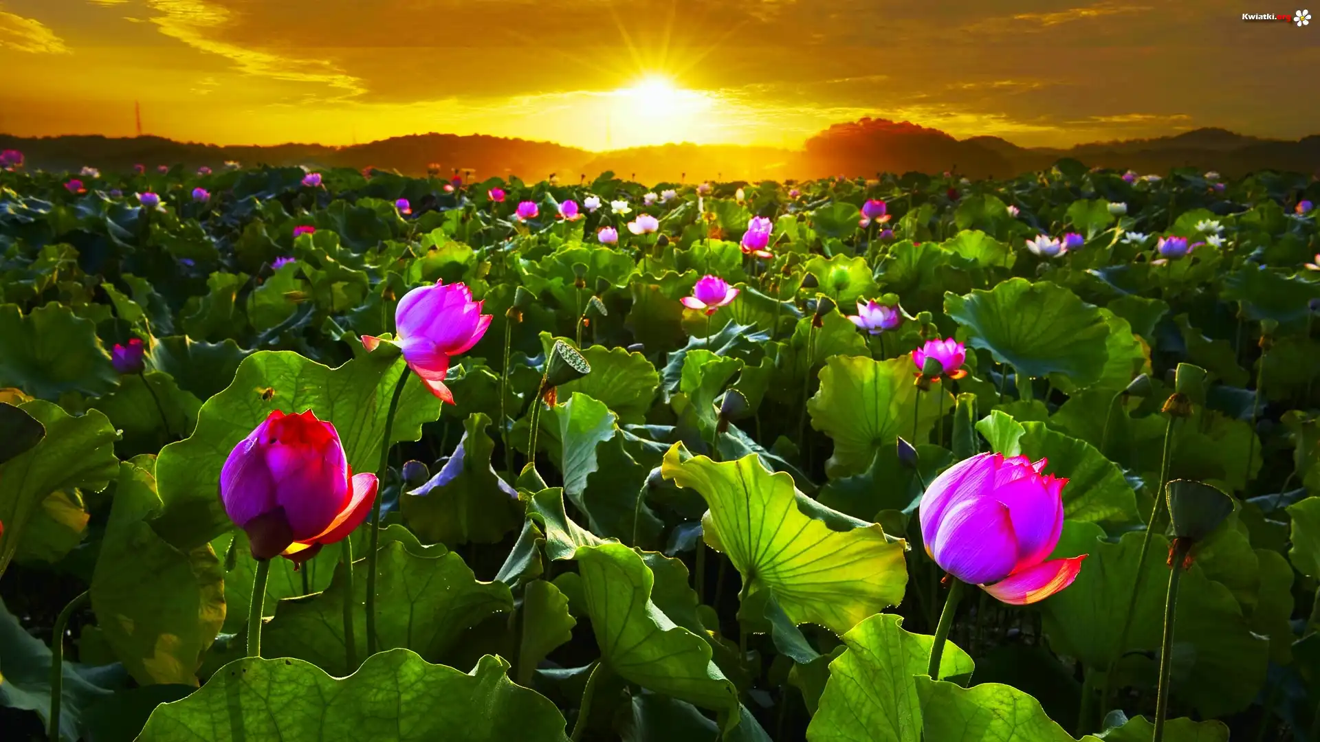 Zachód, Słońca, Pole, Kwiatów - Zdjęcia