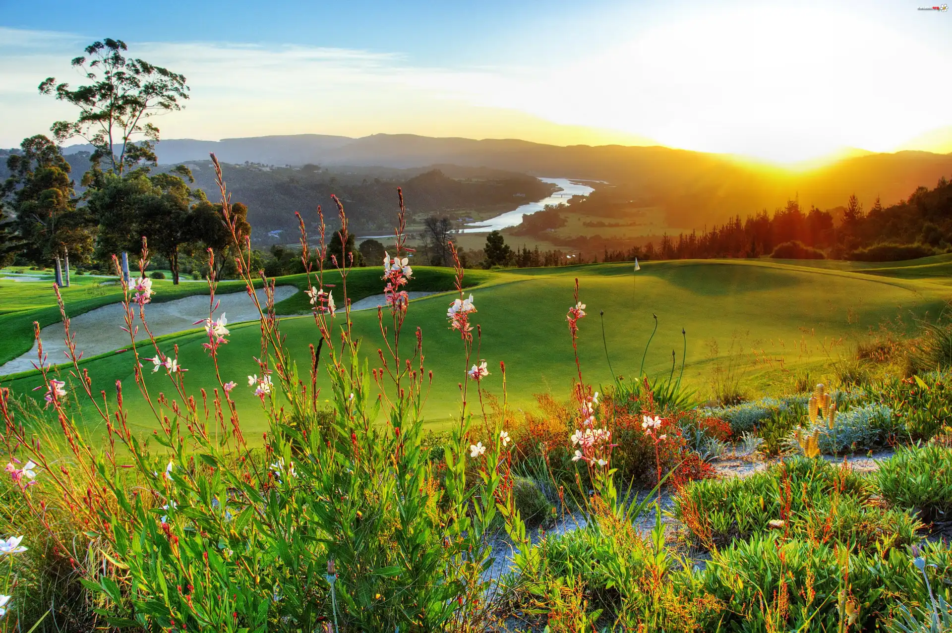 Kwiat Zachód, Słońca, Góry, Rzeka, Polne, Kwiaty