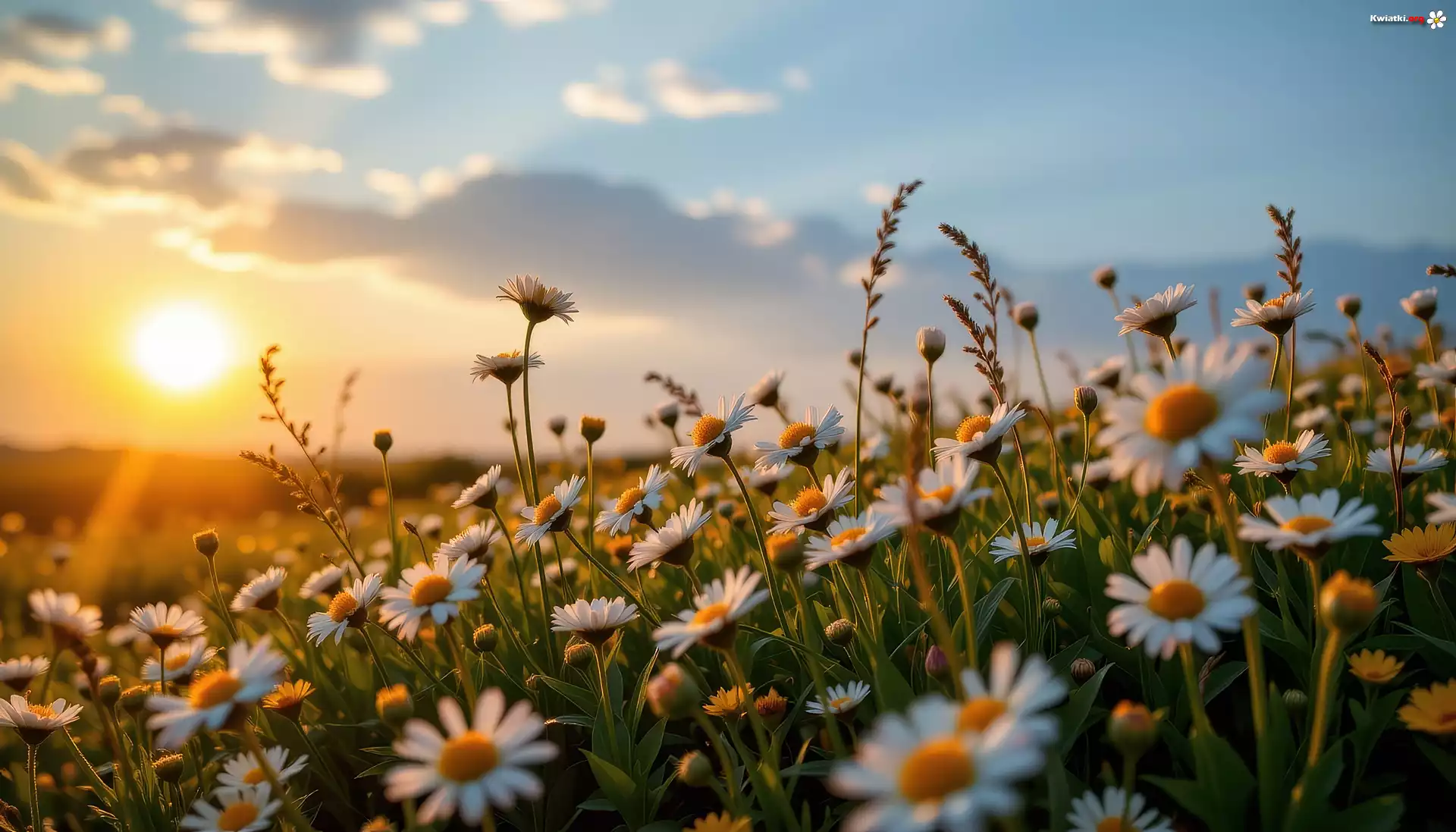 Kwiaty, Rumiany polne, Zachód słońca, Grafika AI - Zdjęcia