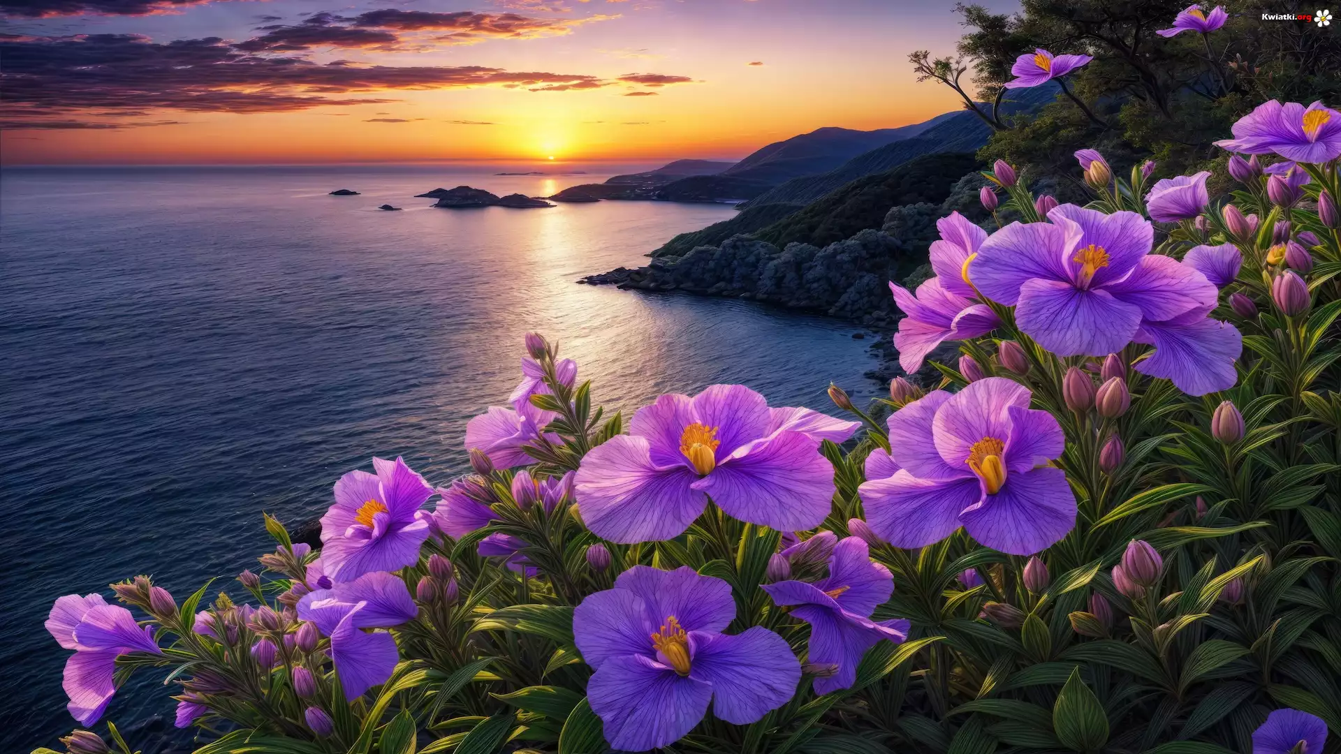 Morze, Zachód Słońca, Kwiaty, Fioletowe - Zdjęcia