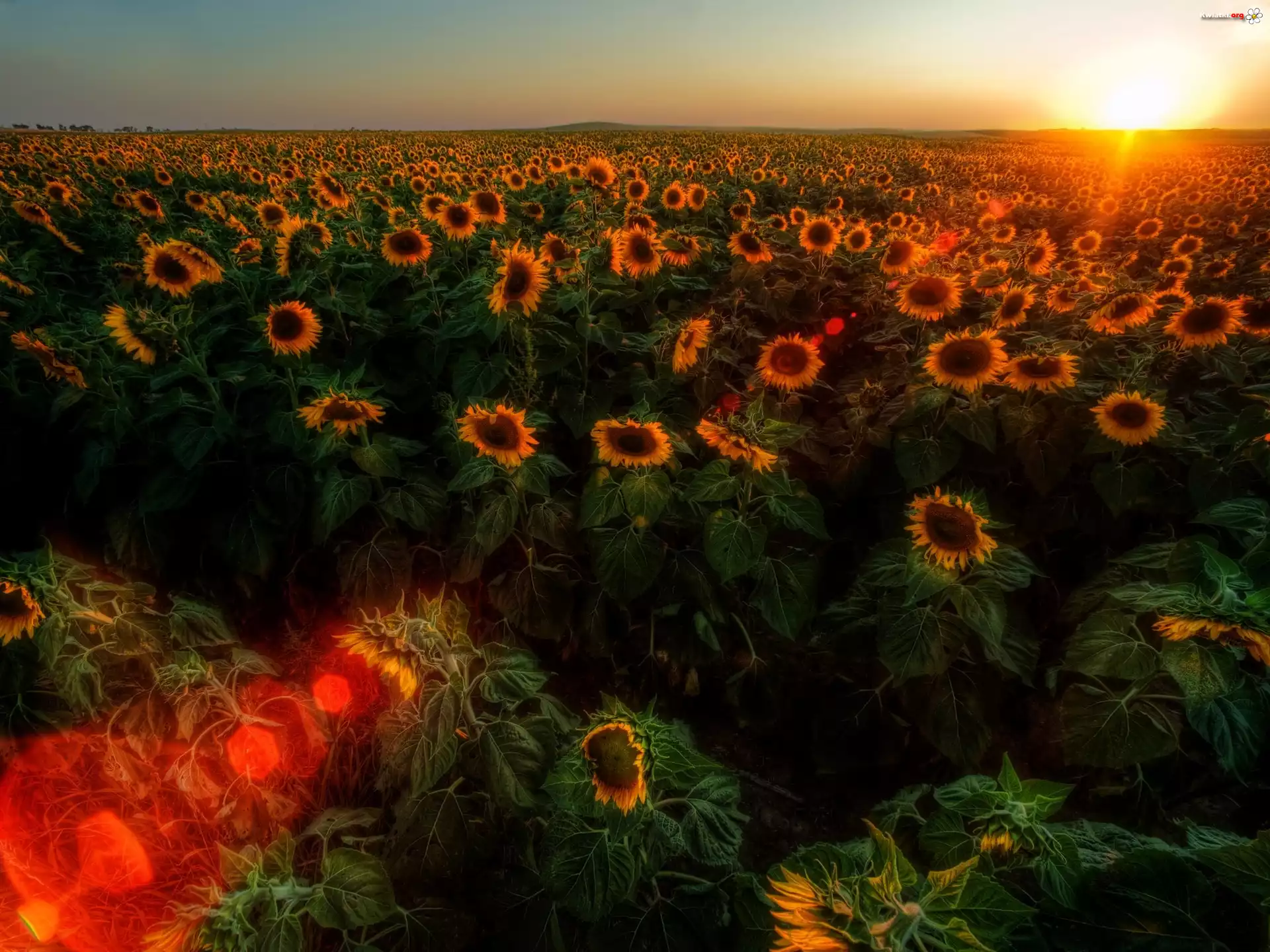 Słoneczniki, Zachód, Słońca - Zdjęcia