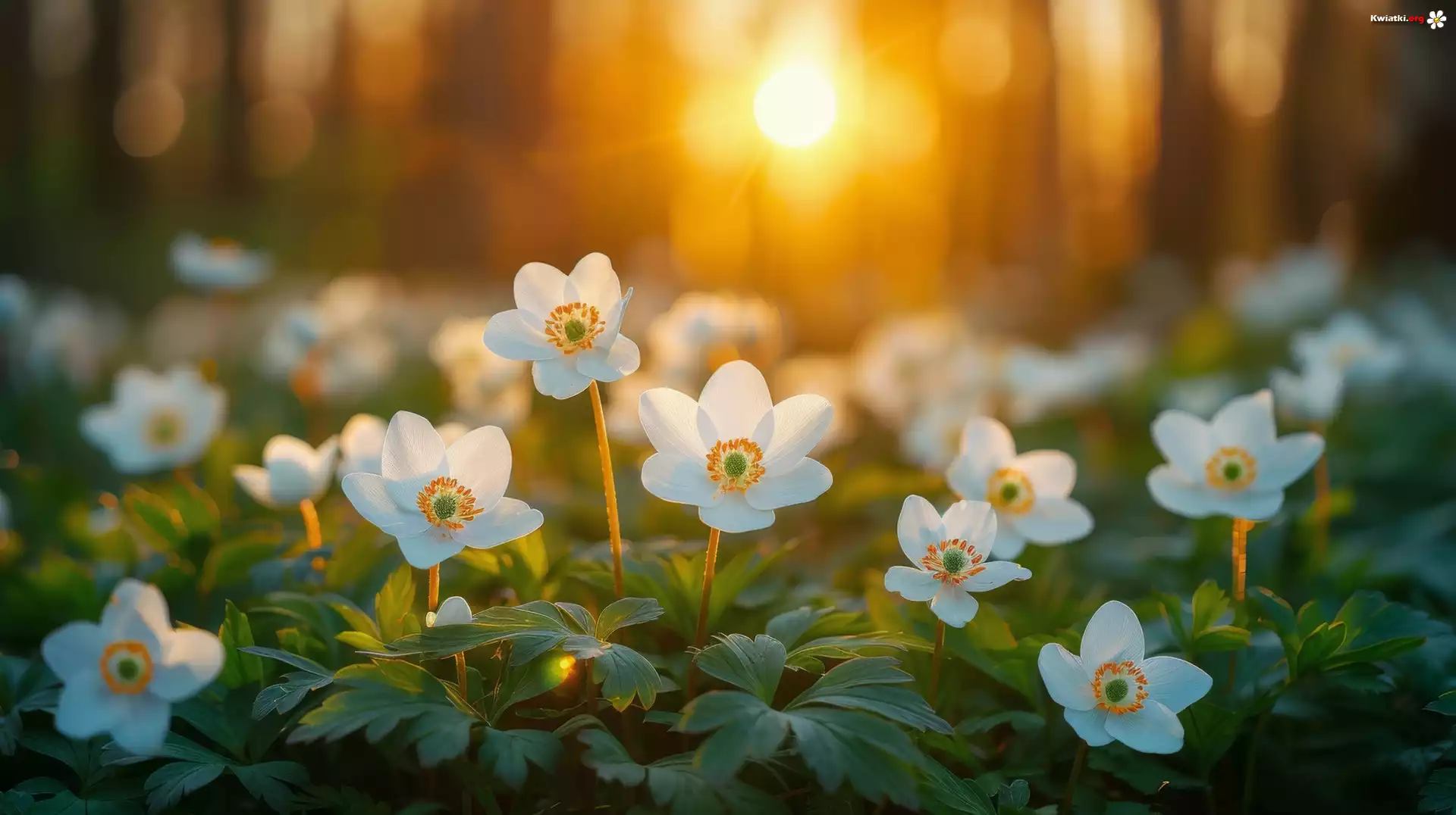 Białe, Kwiaty, Liście, Zawilce - Zdjęcia
