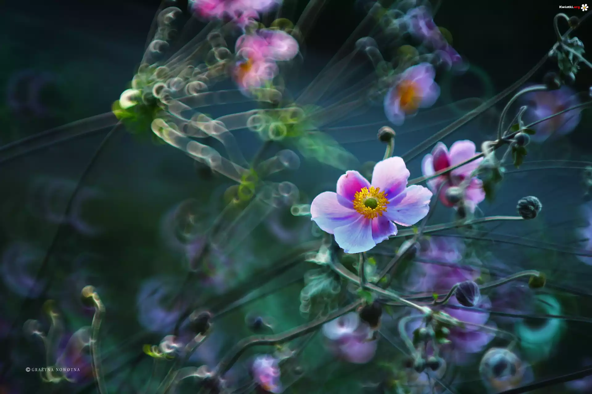 Zawilec Japoński, Kwiaty, Bokeh - Zdjęcia