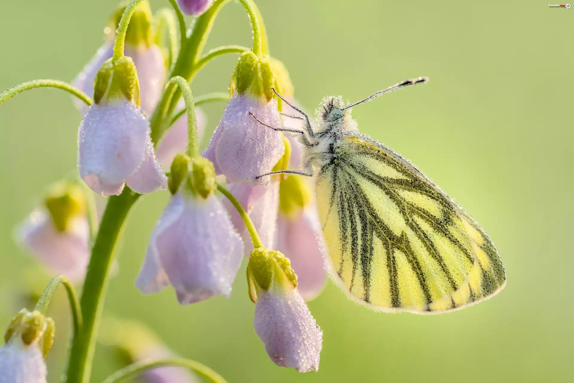 Kwiat Motyl, Bielinek bytomkowiec, Zbliżenie, Gałązka, Liliowe, Kwiaty