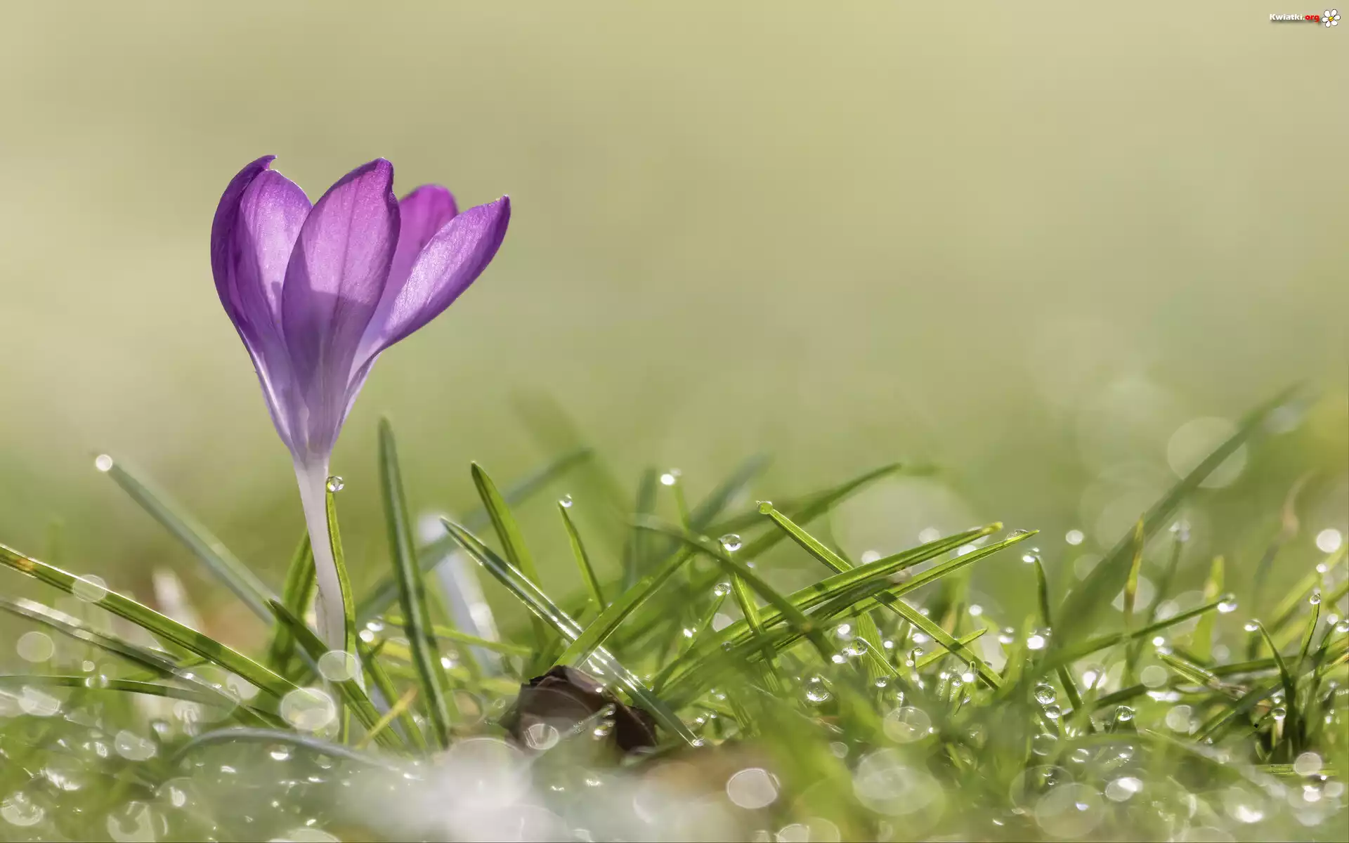 Krokus, Trawa, Krople, Zbliżenie - Zdjęcia