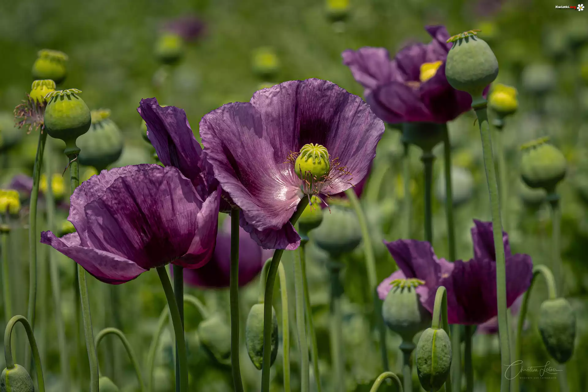 Kwiaty, Fioletowe, Maki, Zbliżenie - Zdjęcia