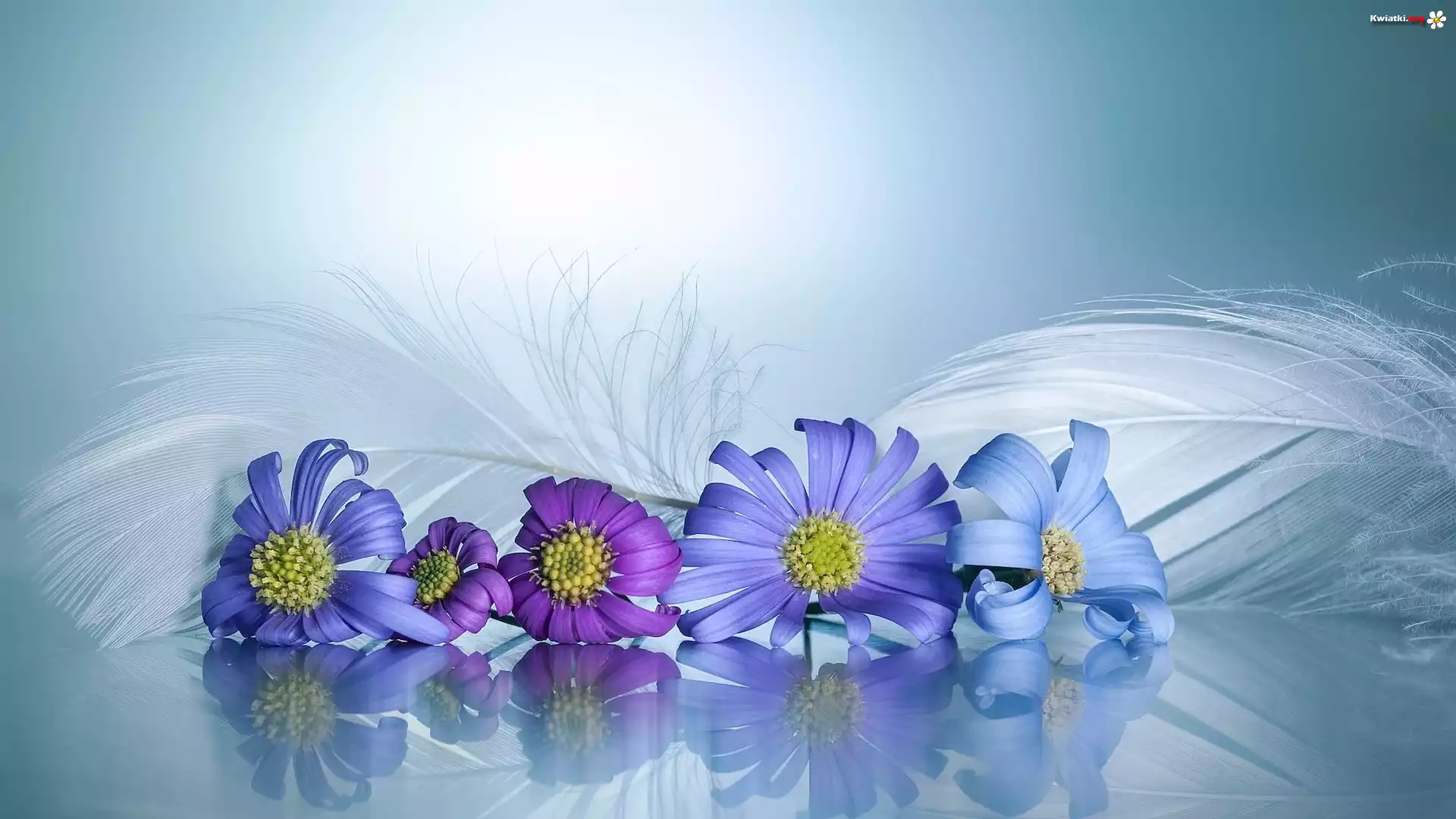 Kwiaty, Niebieskie, Piórka, Zbliżenie - Zdjęcia