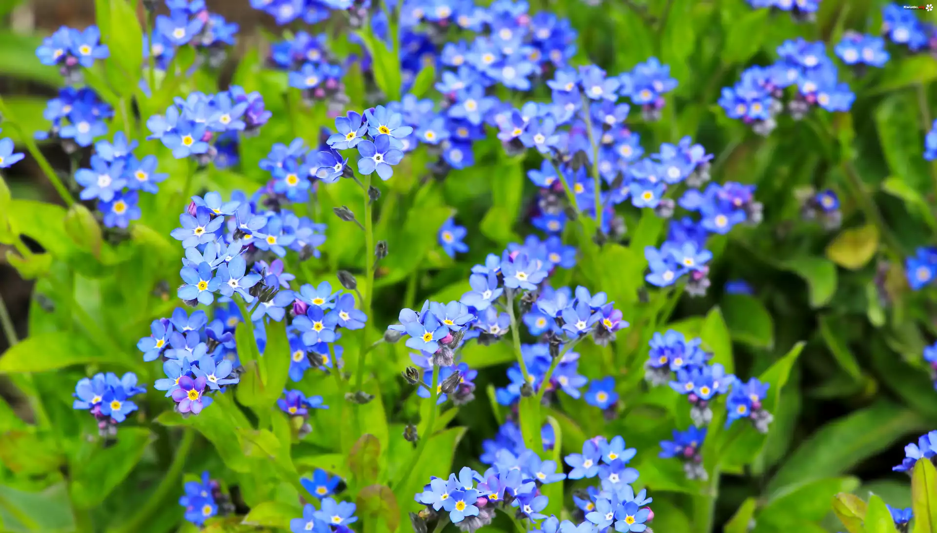 Niebieskie, Kwiaty, Niezapominajki, Zbliżenie - Zdjęcia