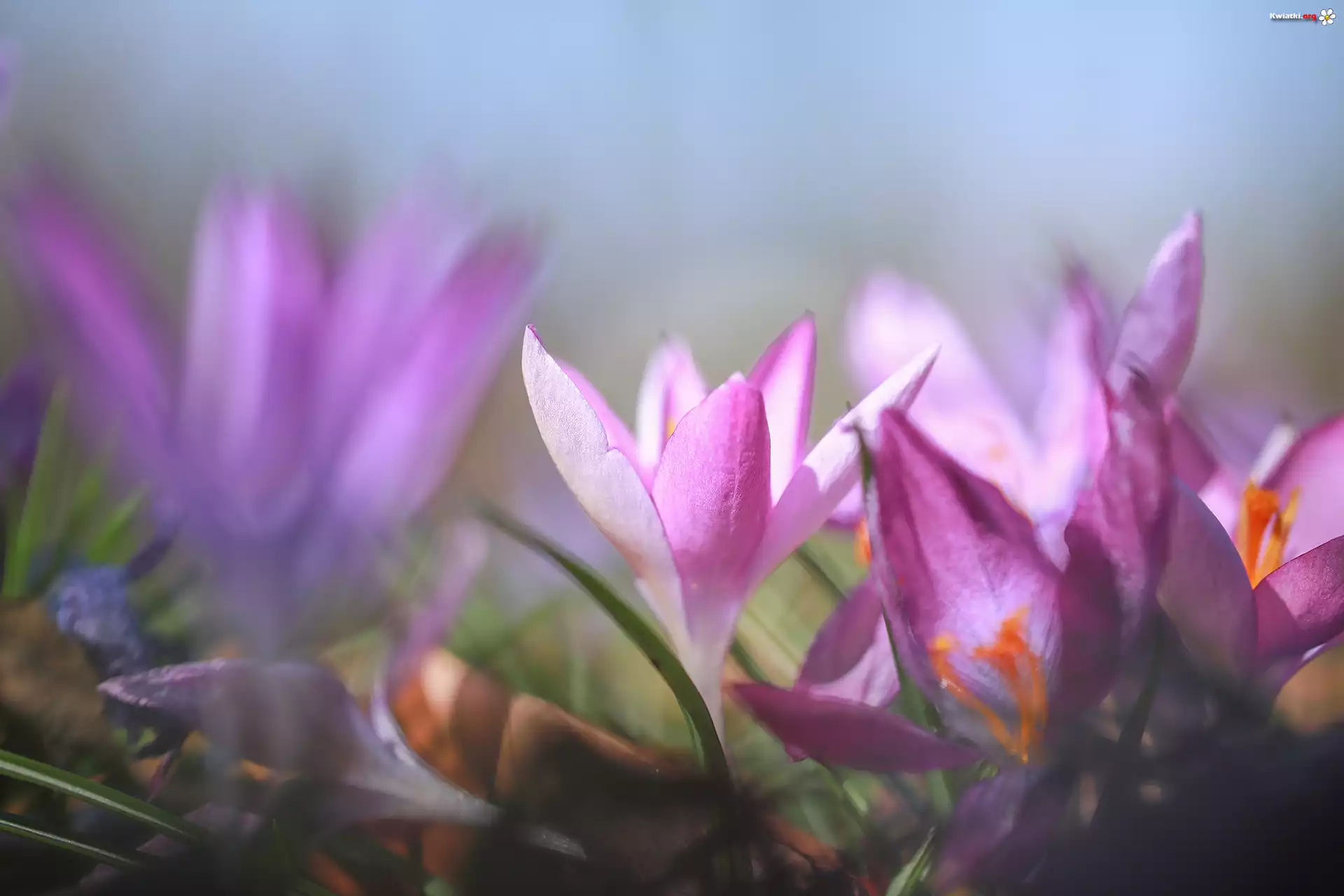 Różowe, Krokusy, Kwiaty, Zbliżenie - Zdjęcia
