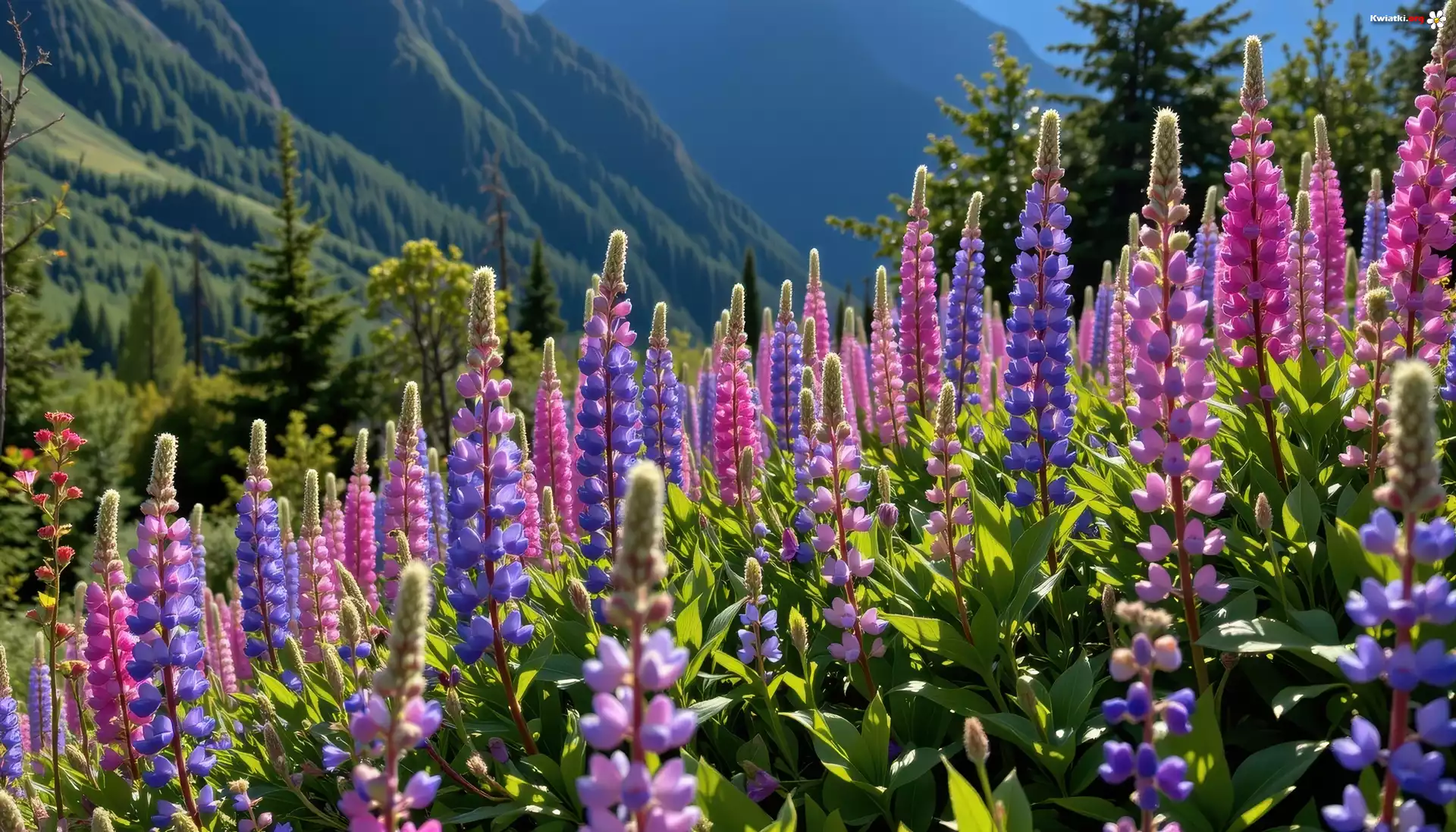 Kwiat Łubin, Kwiaty, Góry, Zbocze, Grafika AI