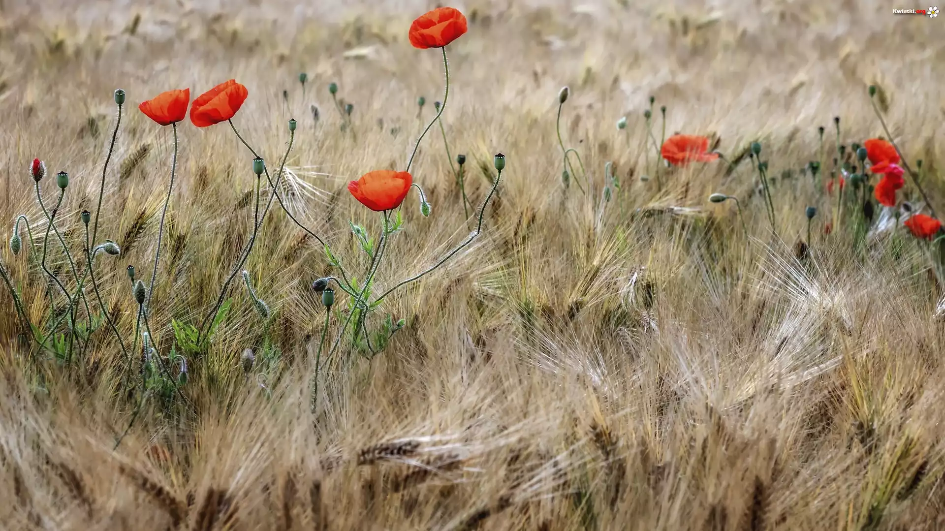 Zboże, Kłosy, Kwiat, Mak, Rozmycie - Zdjęcia