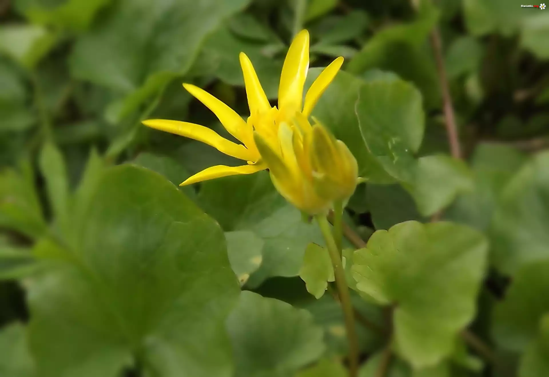 Kwiat Ziarnopłon, Wiosenny, Żółty, Kwiat, Liście