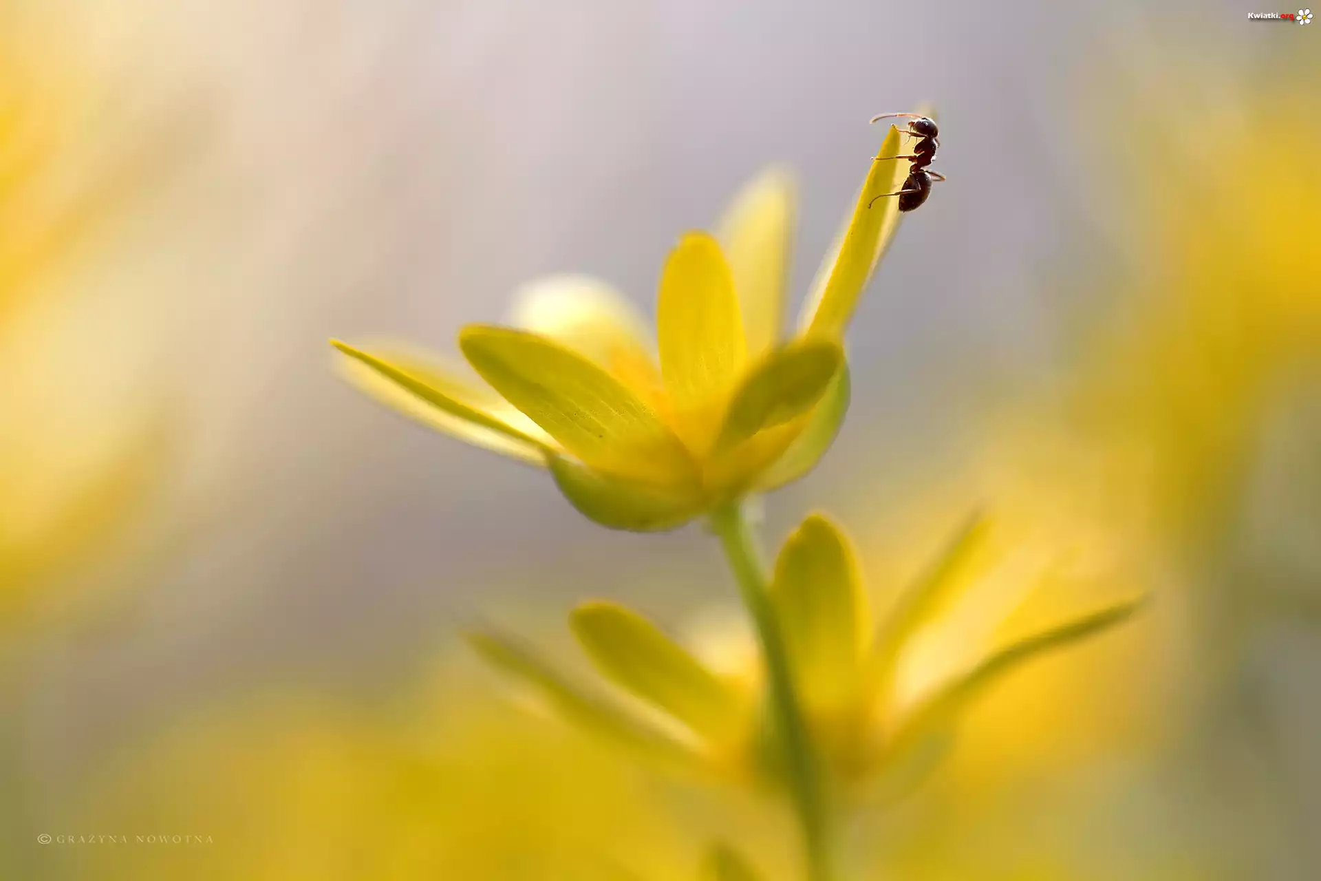 Kwiat Ziarnopłon Wiosenny, Żółte, Kwiaty, Mrówka