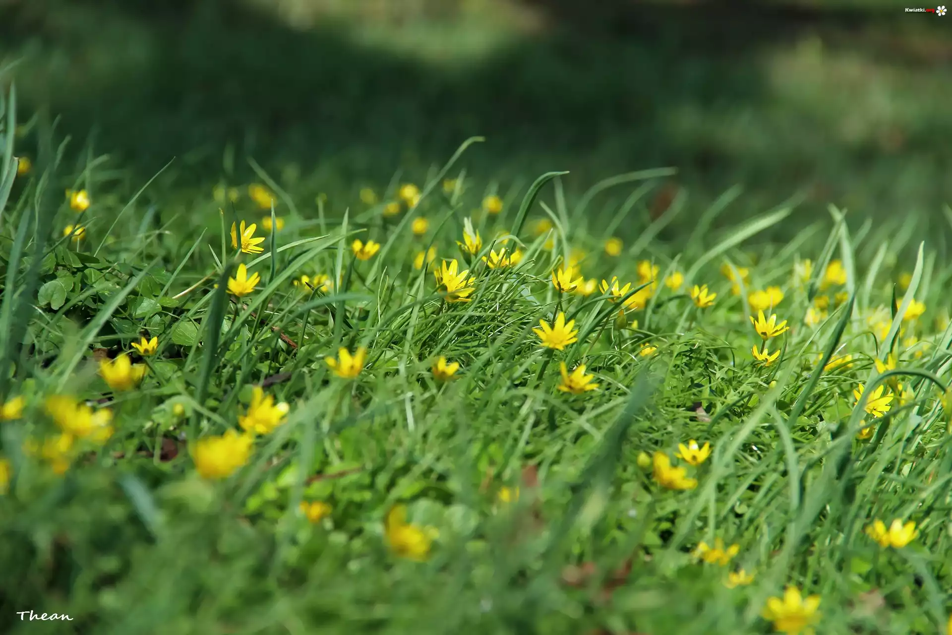 Kwiat Ziarnopłon Wiosenny, Trawa, Żółte, Kwiaty