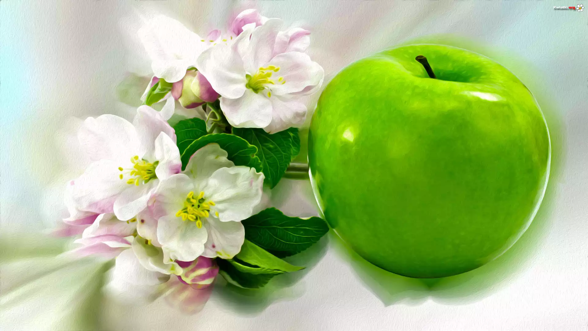 Zielone, Jabłko, Kwiaty, Jabłoni, Grafika - Zdjęcia
