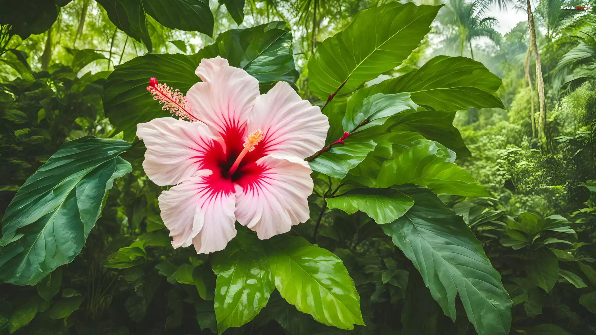 Kwiat, Hibiskus, Liście, Zielone - Zdjęcia