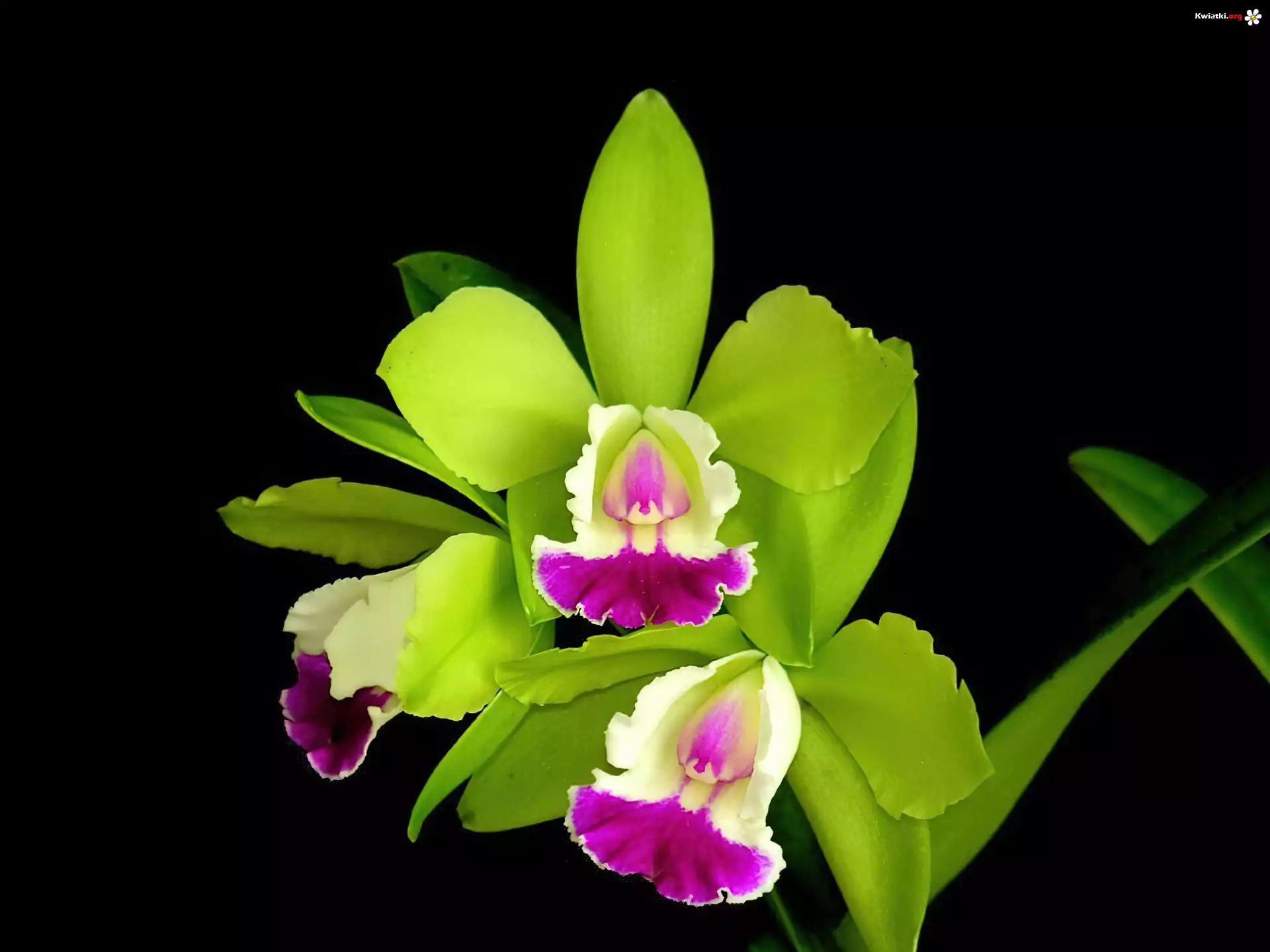 Kwiat Storczyk, Kwiat, Zielone, Liście