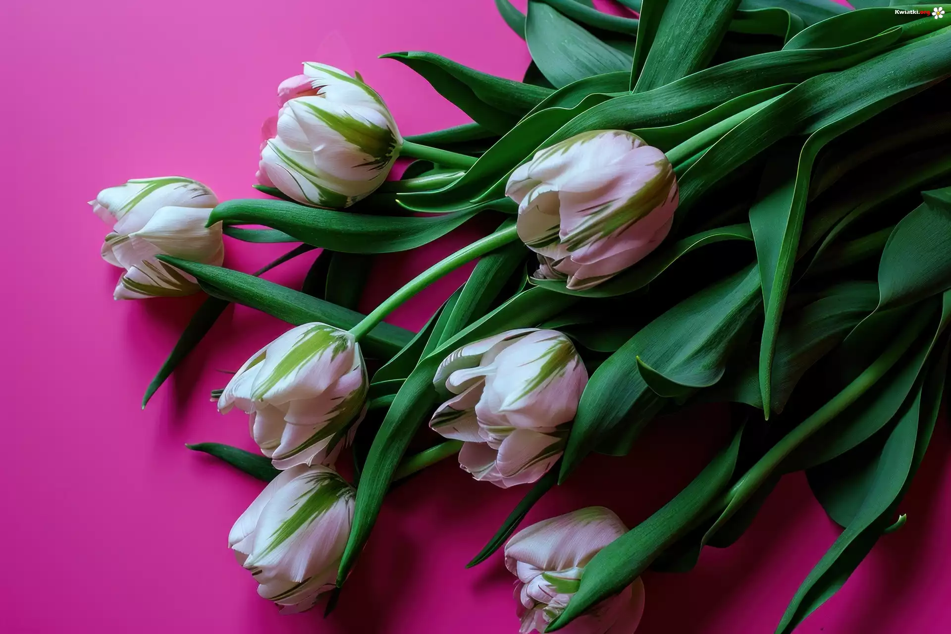 Kwiat Biało-zielone, Tulipany, Różowe, Tło