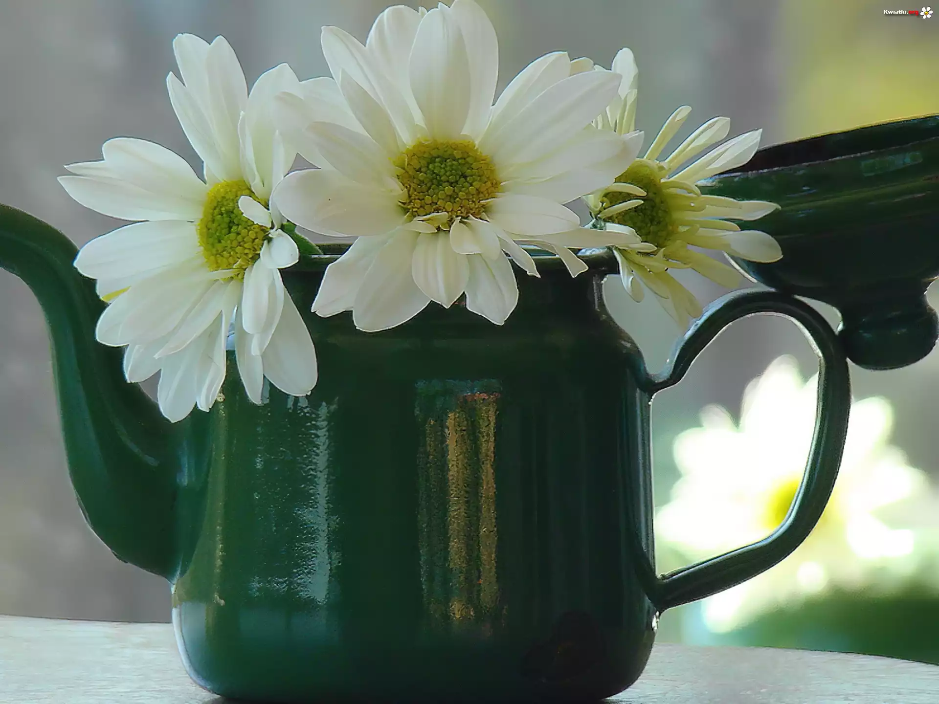 Zielony, Dzbanek, Białe, Margarytki - Zdjęcia