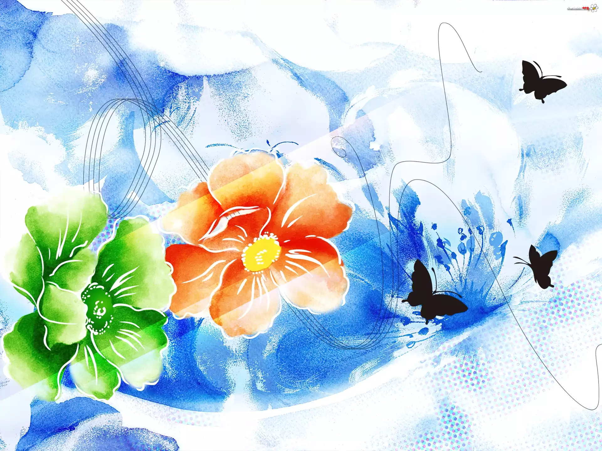 Zielony, Pomarańczowy, Kwiat, Motyle - Zdjęcia