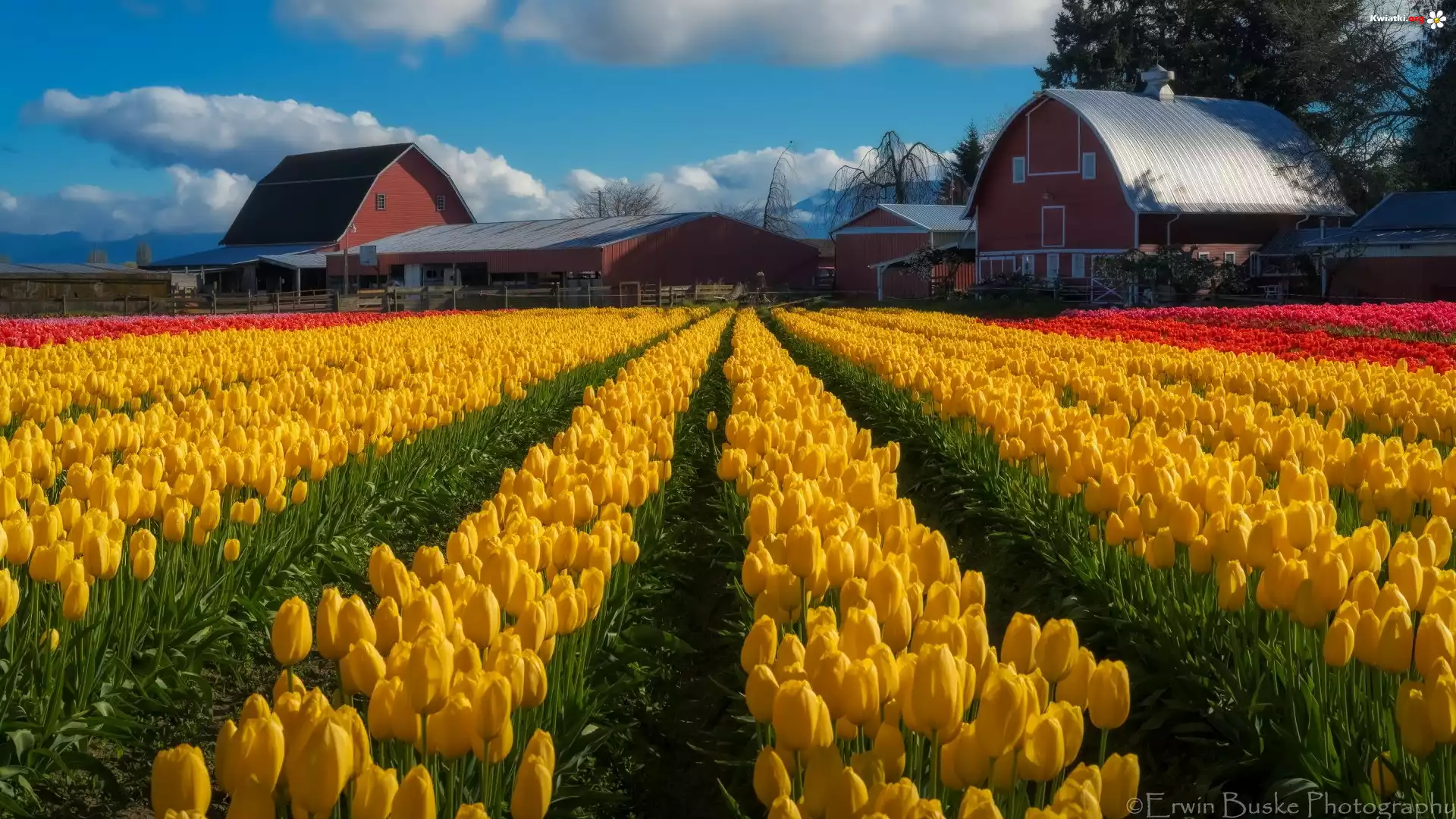 Plantacja, Tulipany, Pole, Domy, Skagit Valley, Stan Waszyngton, Stany Zjednoczone - Zdjęcia