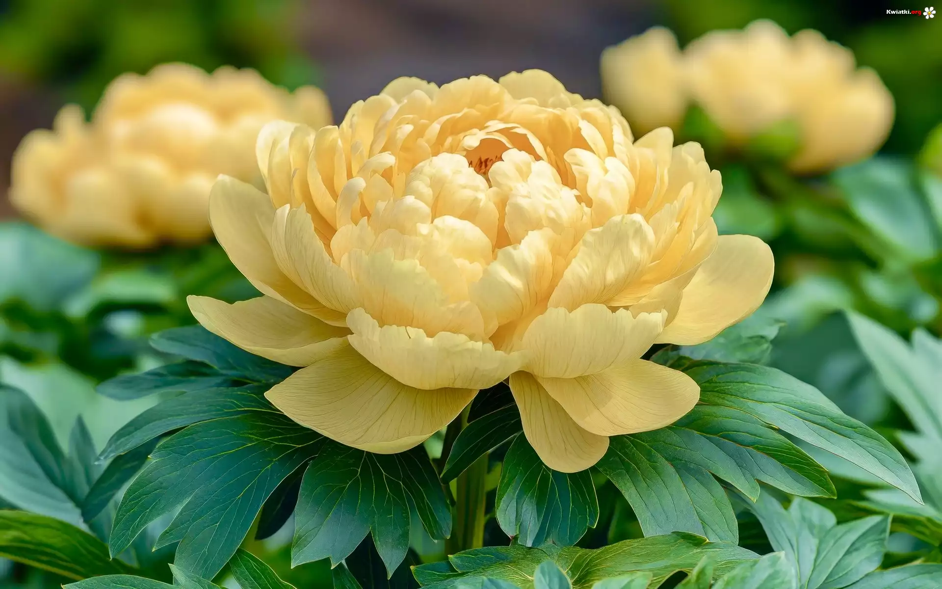 Kwiat Kwiat, Żółta, Piwonia, Liście, AI