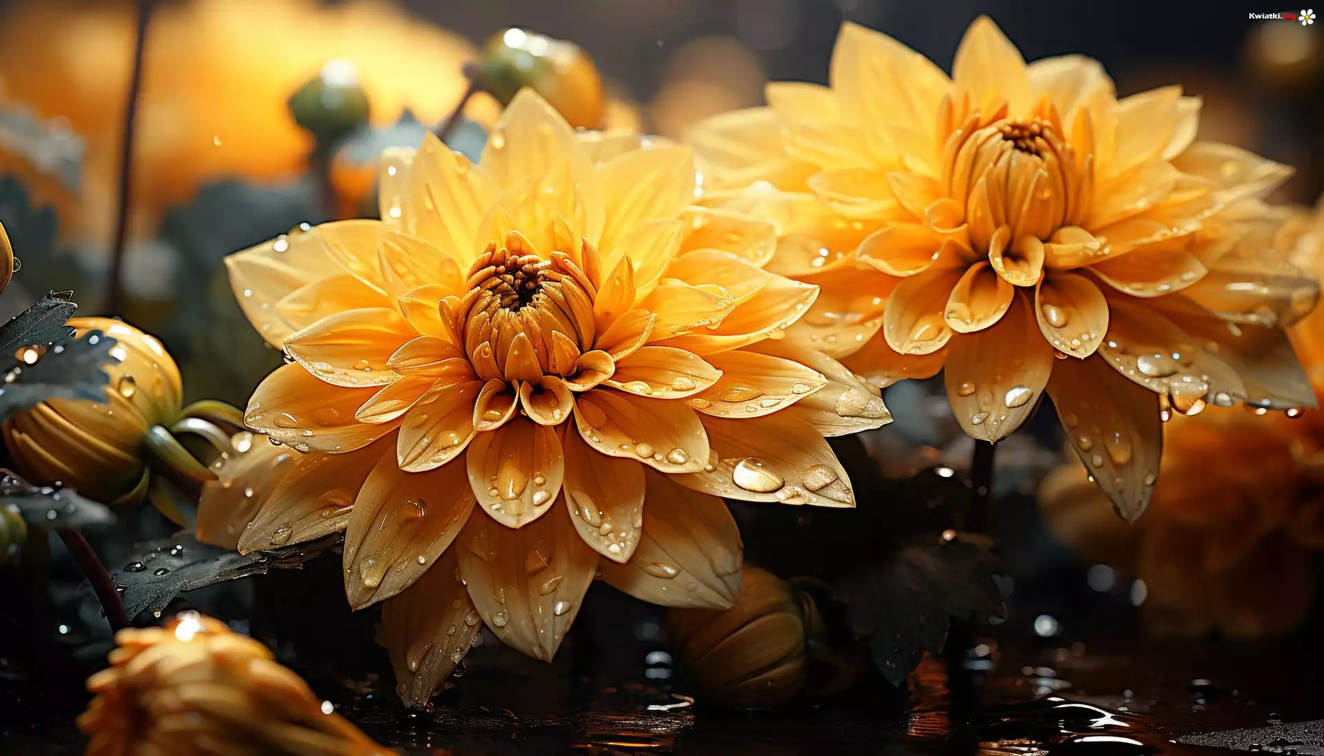 Kwiaty, Żółte, Dalie, Pąki, Krople - Zdjęcia