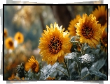 Kwiat Słoneczniki, Żółte, Kwiaty, Grafika AI