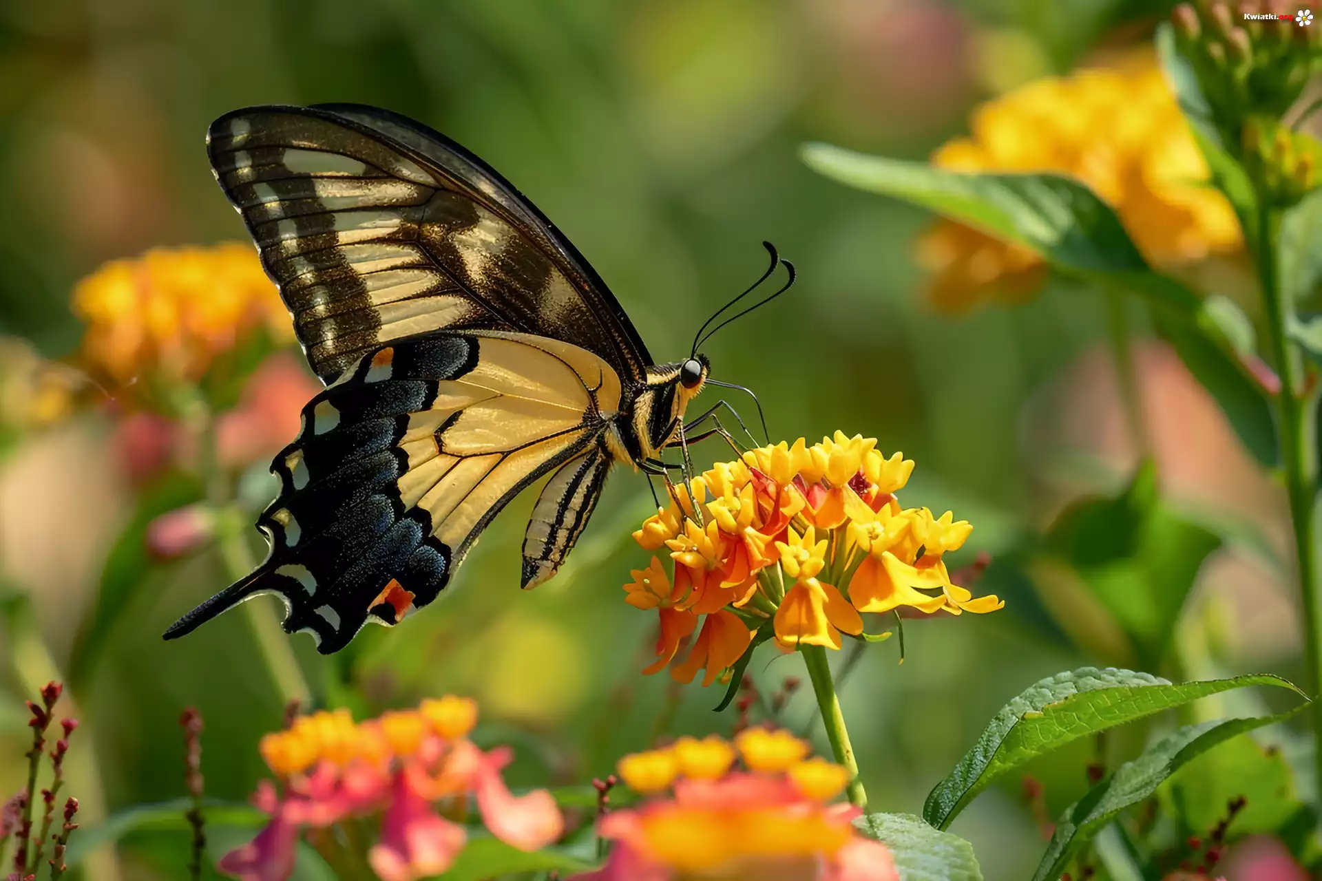 Motyl, Paź królowej, Żółty, Kwiat, Grafika - Zdjęcia