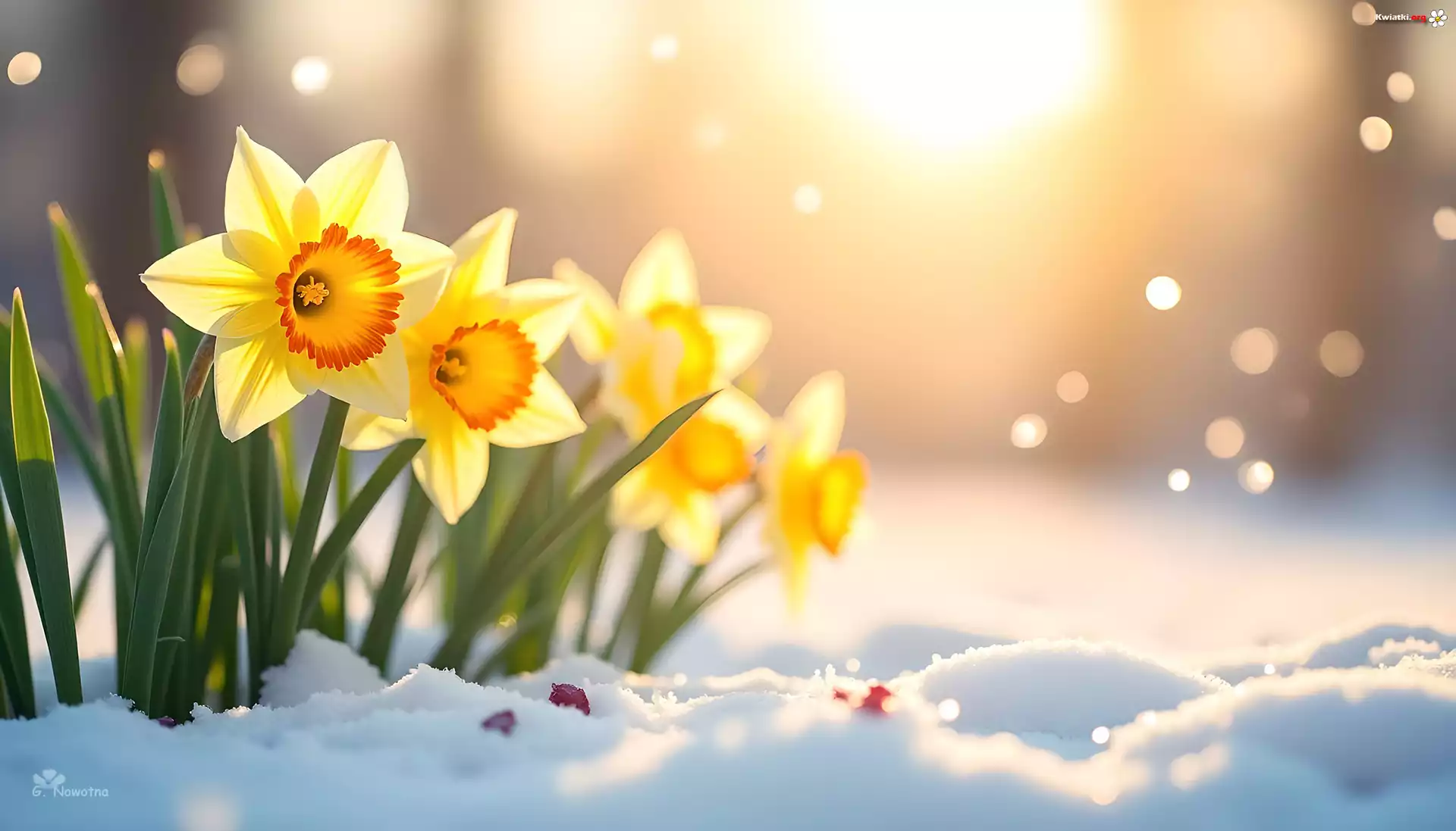Narcyzy żonkile, Żółte, Kwiaty, Grafika - Zdjęcia